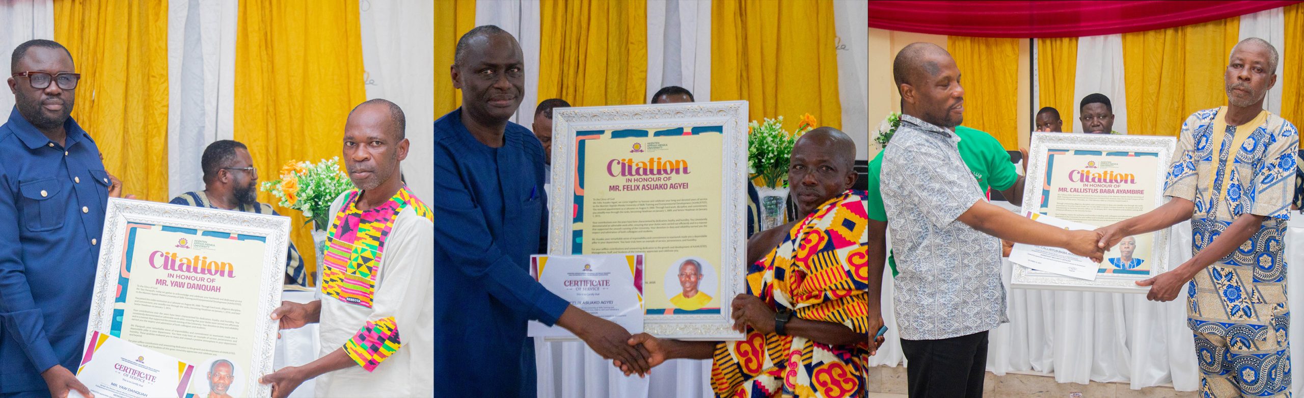 He also acknowledged that AAMUSTED has also contributed immensely to their development, and the University has become their intellectual home and a family. He was optimistic that even in retirement, the retirees would continue to find ways to support AAMUSTED’s development.