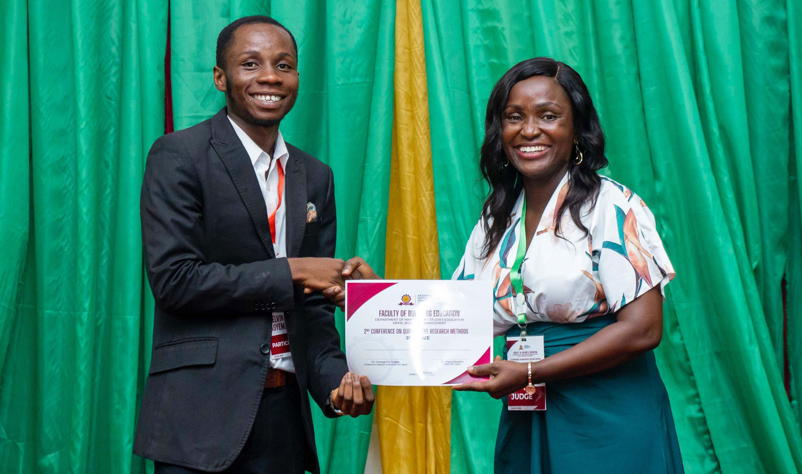 Nineteen (19) Master of Philosophy (M.Phil) Business Management students took advantage of the Conference to make in-person presentations on a wide range of issues for which they received certificates of participation. Three of them – Miss Mary Odei, Mr. Michael Bonsu, and Mr Kelvin Agyemang – were also adjudged the best presenters and awarded special prizes.