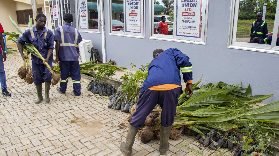 The UEW Co-operative Credit Union (UEWCCU) has undertaken an exercise to plant a range of fruit-bearing and shade tree seedlings at the Kumasi campus of the Akenten Appiah-Menkah University of Skills Training and Entrepreneurial Development (AAMUSTED), and nearby Anglican Basic School, as part of the Union’s Corporate Social Responsibility initiatives. The seedlings included coconut, mango, and orange.